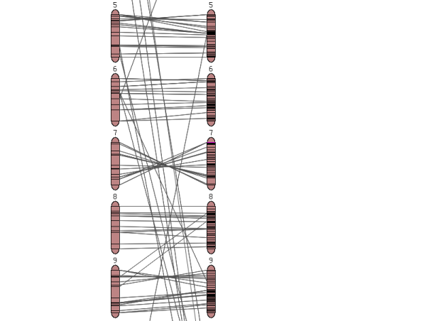 • Compare map to: A pulldown menu allows the selection of a map that shares markers with the current reference map. The pulldown menu is sorted such that the topmost entry has to most shared markers. Clicking the 'compare' button will display the selected comparison map.